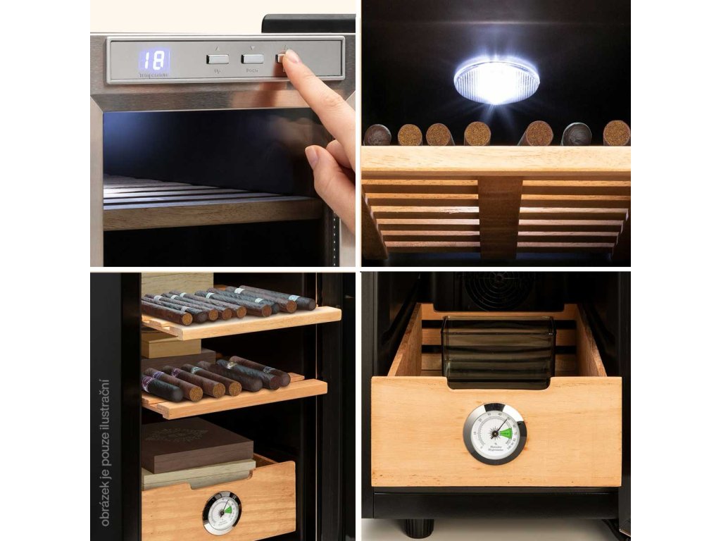 El Presidente 23, humidor, 45 W, dotykové ovládání, bukové dřevo, 23L, LED