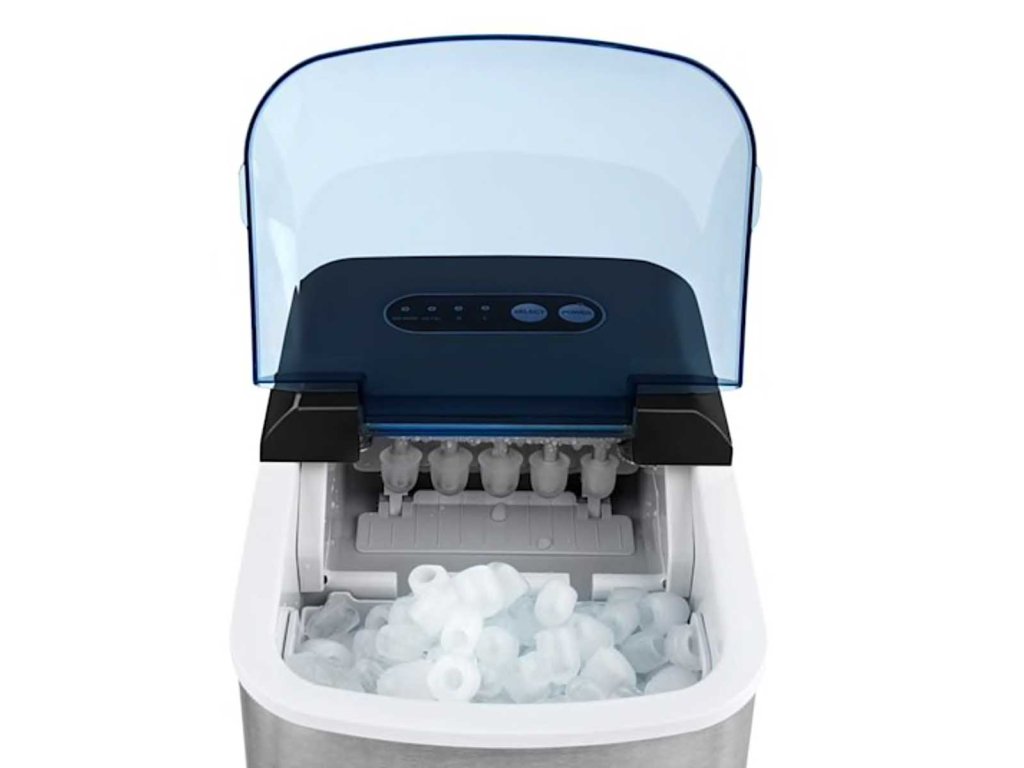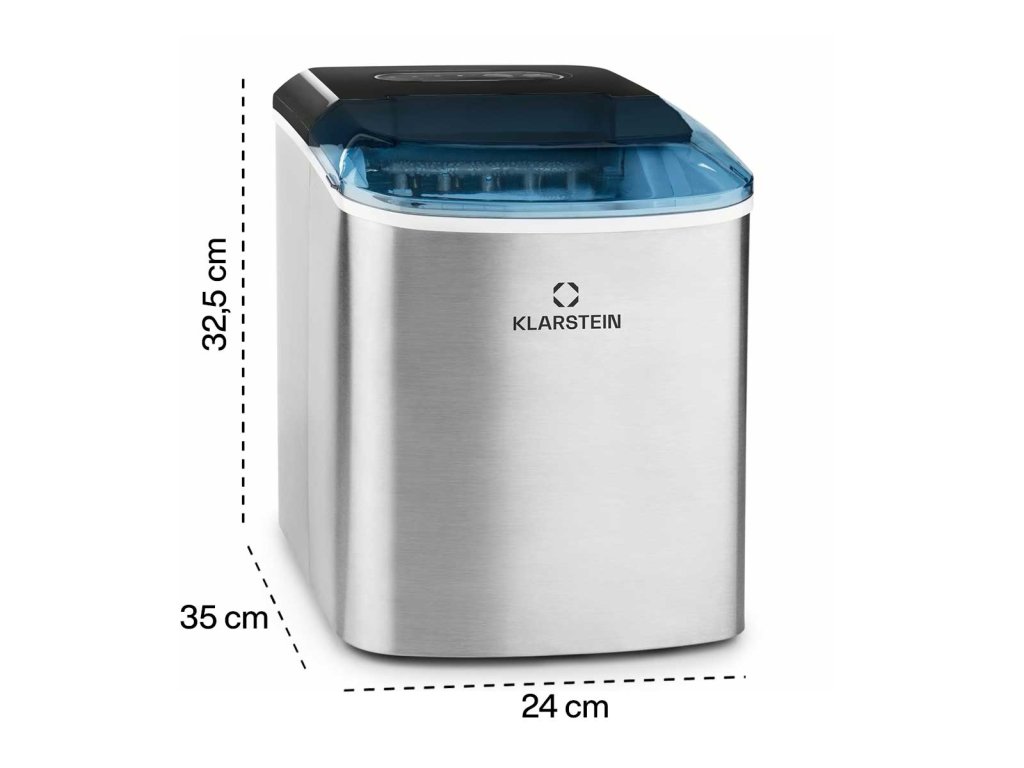 - kompaktní výrobník ledu 12kg/h s nádrží na vodu o objemu 2,1 litru a průhledným víkem